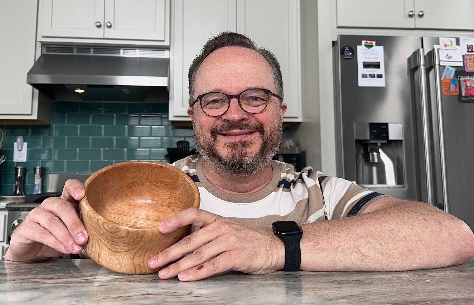 His turned bowl from our bowl turning class still sits on his counter, prompting amazed reactions from visitors. It's a testament to both his skill and the transformative experience of learning something new in a supportive environment.